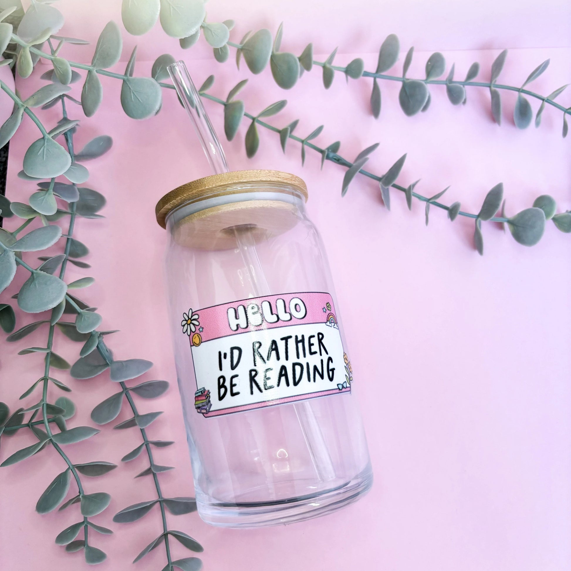 Celebrate your love of reading with this gorgeous 16oz reusable Libby glass can featuring the relatable 'Hello I'd rather be reading' design. Complete with a sustainable bamboo lid and glass straw, it's the perfect companion for book lovers who need their coffee and their books!